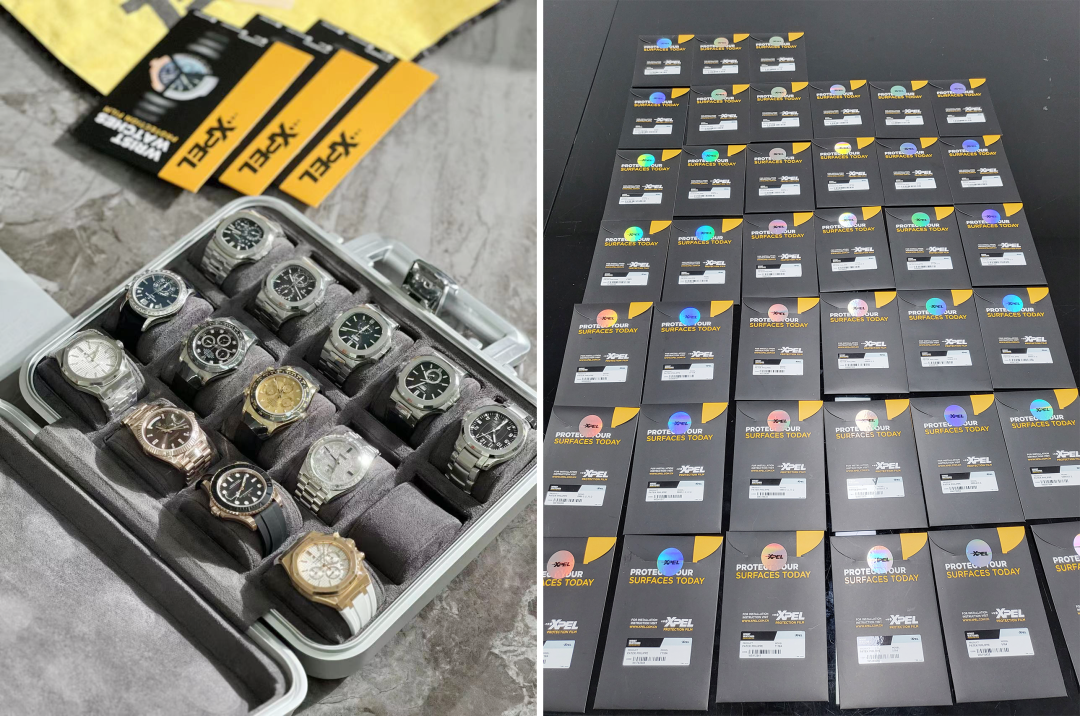 XPEL 为百达斐丽等豪奢名表定制的 WRIST WATCHS 专表专用腕表保护膜全新上市,选用与您爱车具有相同抗污、耐磨、持久、提亮特性的透明保护膜,让您日常在各种场合佩戴腕表都可以更安心。