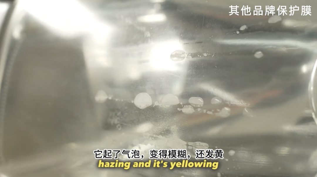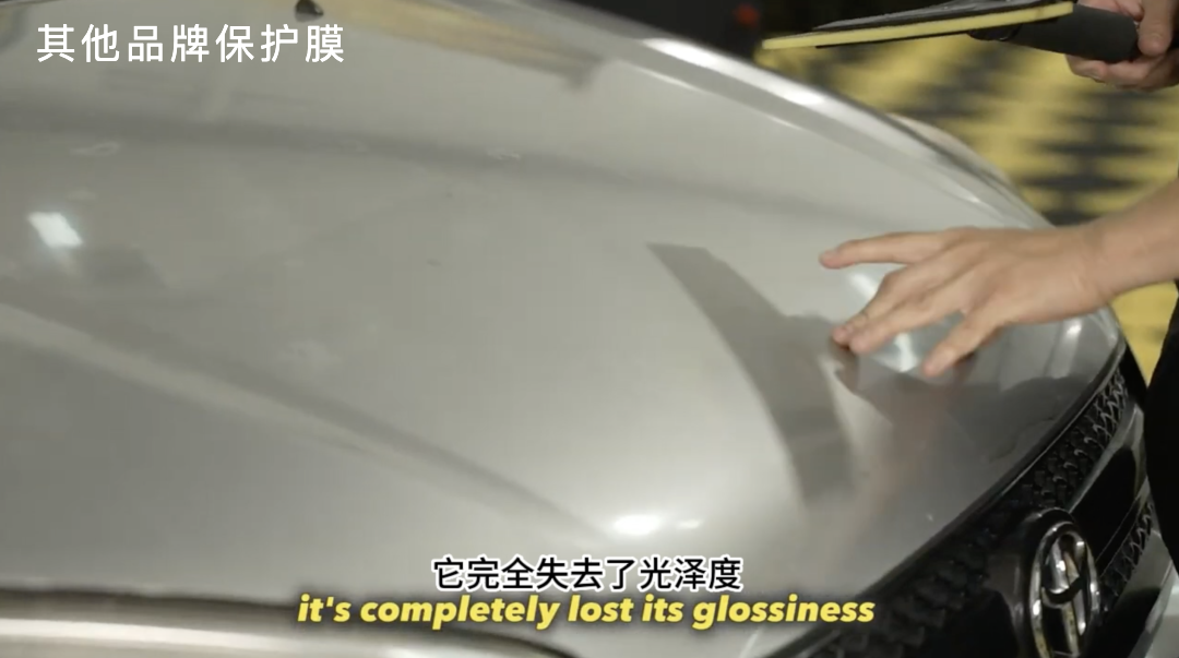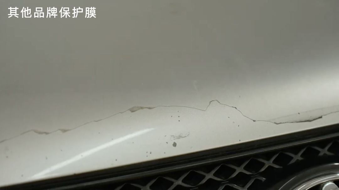 其次是保护性对比:其他品牌保护膜在阳光的冲击下出现断裂、脱落,不再具备有效的保护性能。相反,XPEL 漆面保护膜代替车漆受到损伤,车辆的漆面依然保持完好无损。