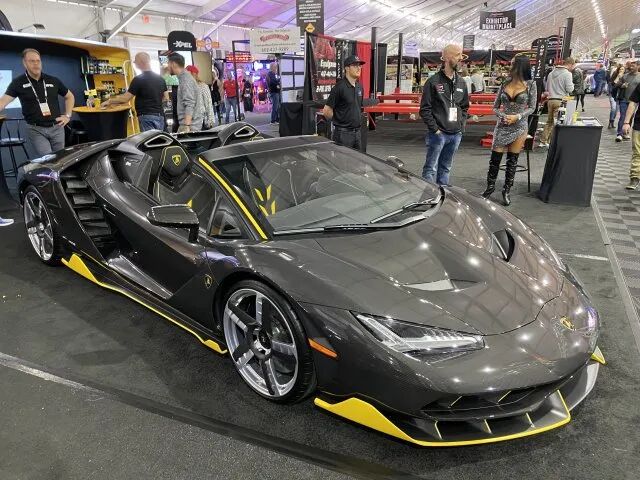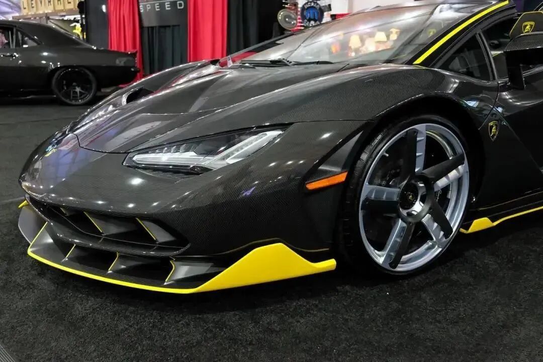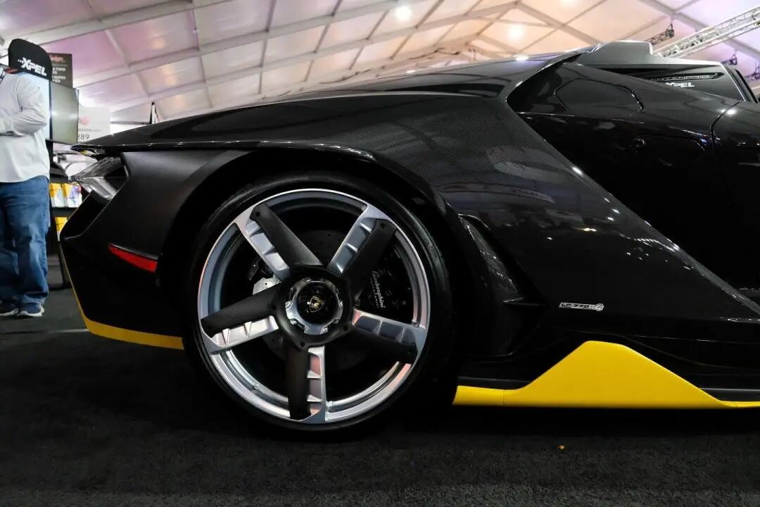 此次活动中,XPEL展位上的这辆敞篷Centenario单体式车壳和车身均以碳纤维制成,炭黑色加黄色点缀的搭配更好地勾勒出车身的曲线轮廓。